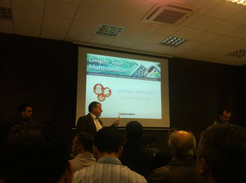 Promovido pela Embarcadero, empresa líder no fornecimento de ferramentas premiadas para bancos de dados e desenvolvimento de softwares, o Delphi Tour Multi-Device aconteceu em Maringá no último dia 29 e os desenvolvedores da Omega Sistemas tiveram a oportunidade de participar desse concorrido evento onde foram apresentadas as novidades do RAD Studio XE4, versão mais recente da suíte de ferramentas da Embarcadero que inclui o Delphi XE4, C++ Builder XE4 e HTML5 Builder.