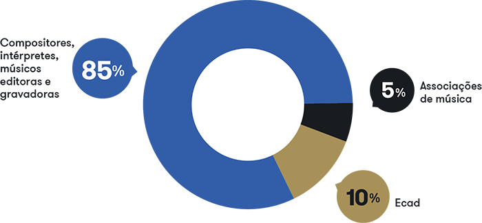 O ECAD disse: "Nós arrecadamos os direitos autorais de canais e espaços que usam música, identificamos as canções e distribuímos os valores para as associações, que remuneram os artistas conforme o gráfico abaixo." (Clique na imagem para visualizar melhor)